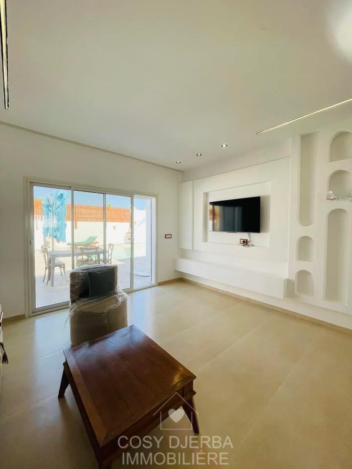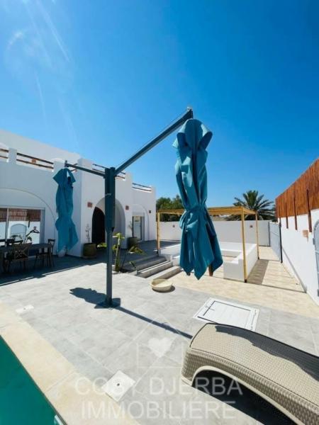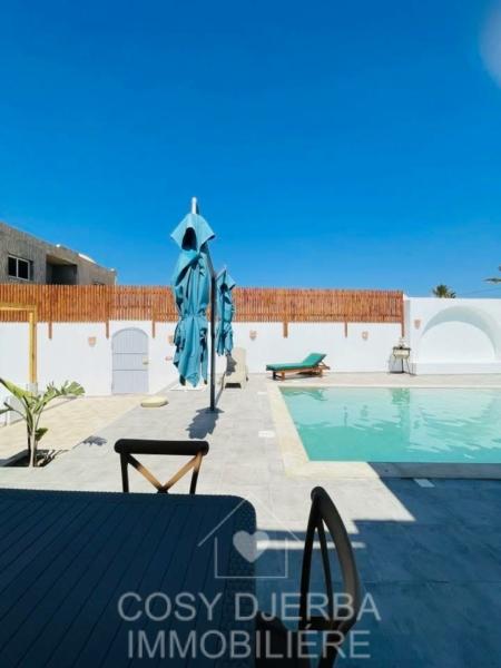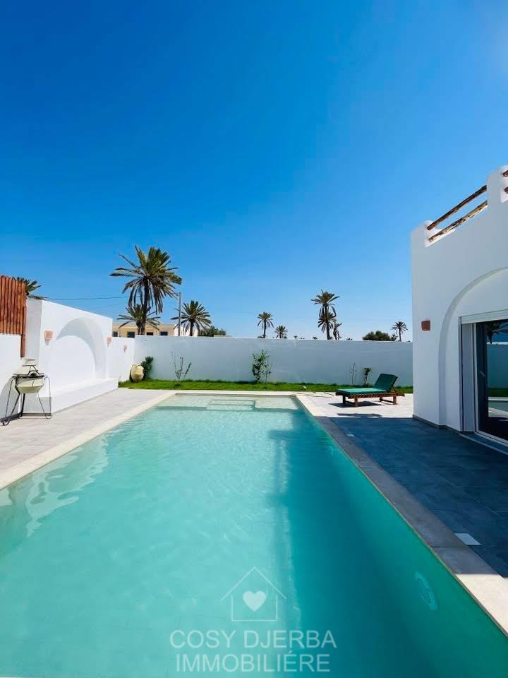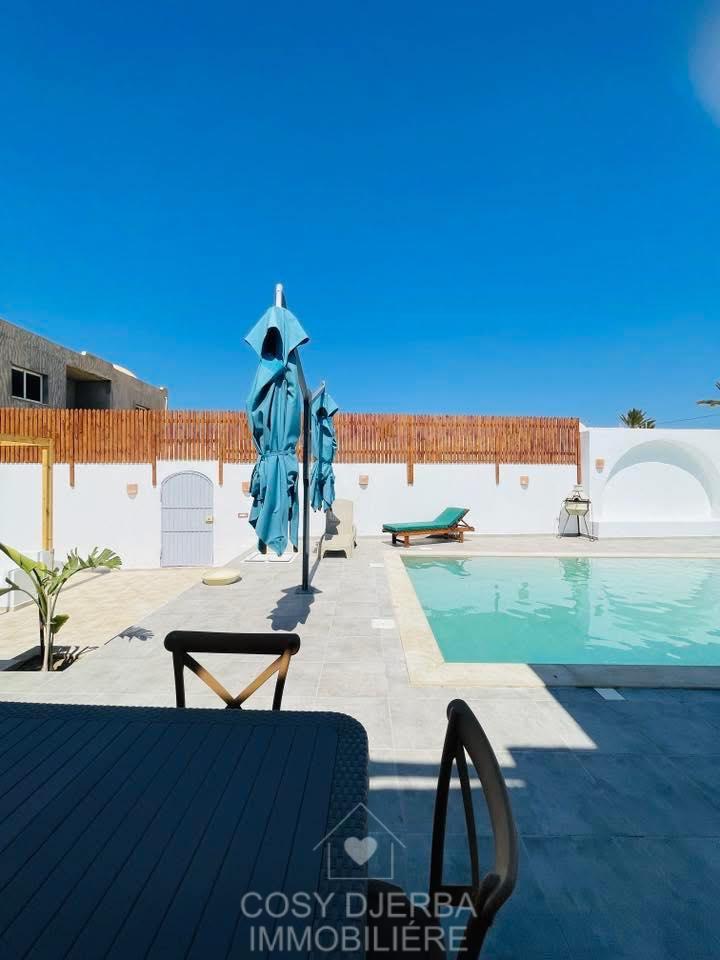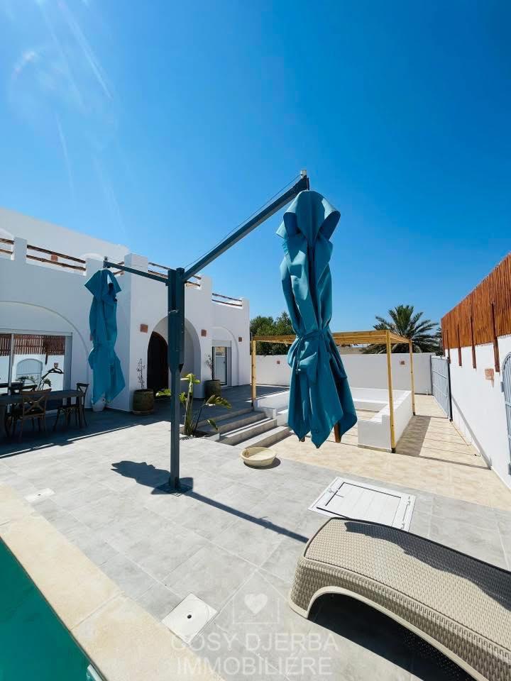 Cosy Djerba vous propose Γ la location annuelle cette superbe villa typique moderne avec piscine, situΓ©e Γ Khazroun, Midoun, Djerba.
