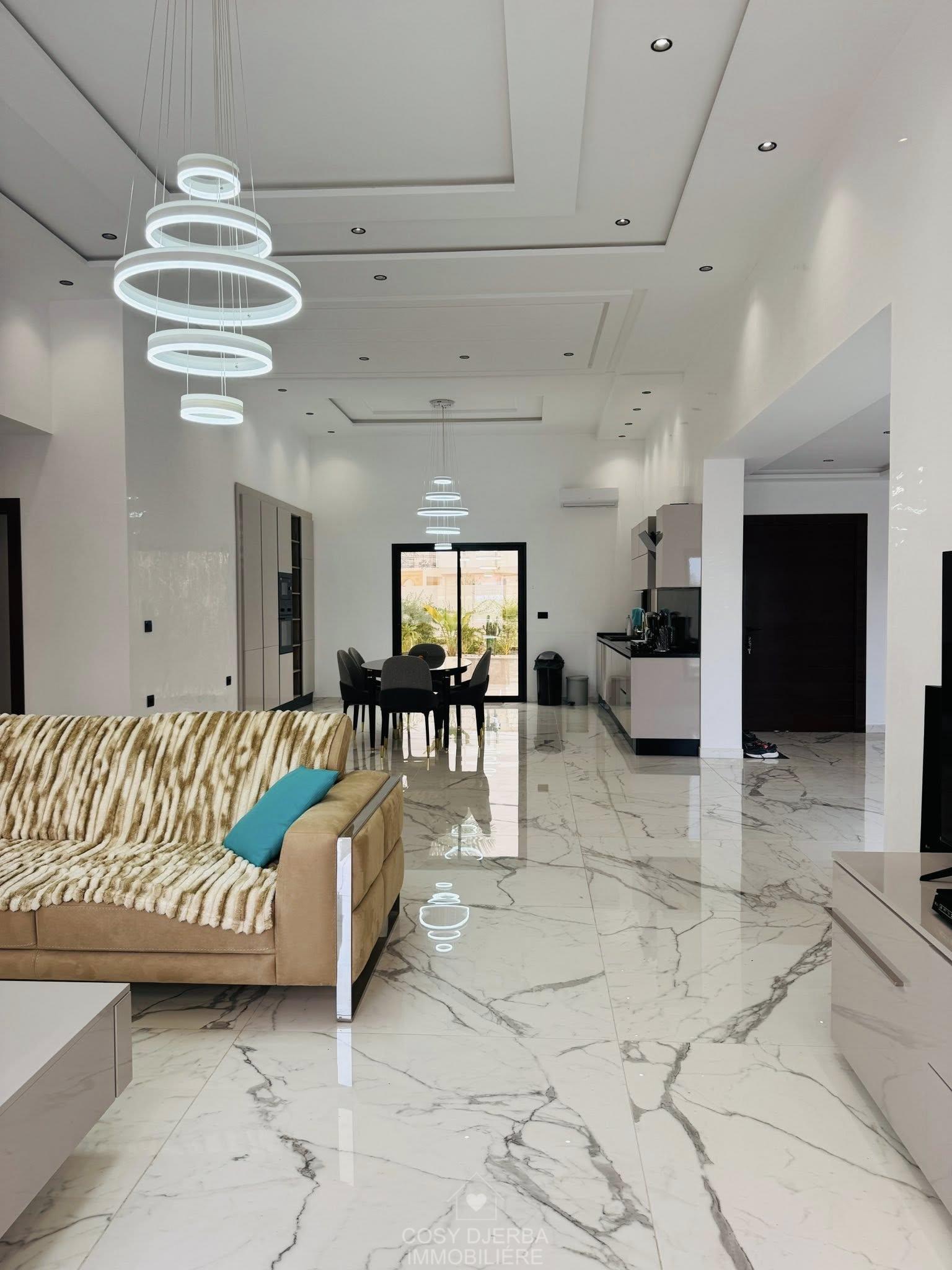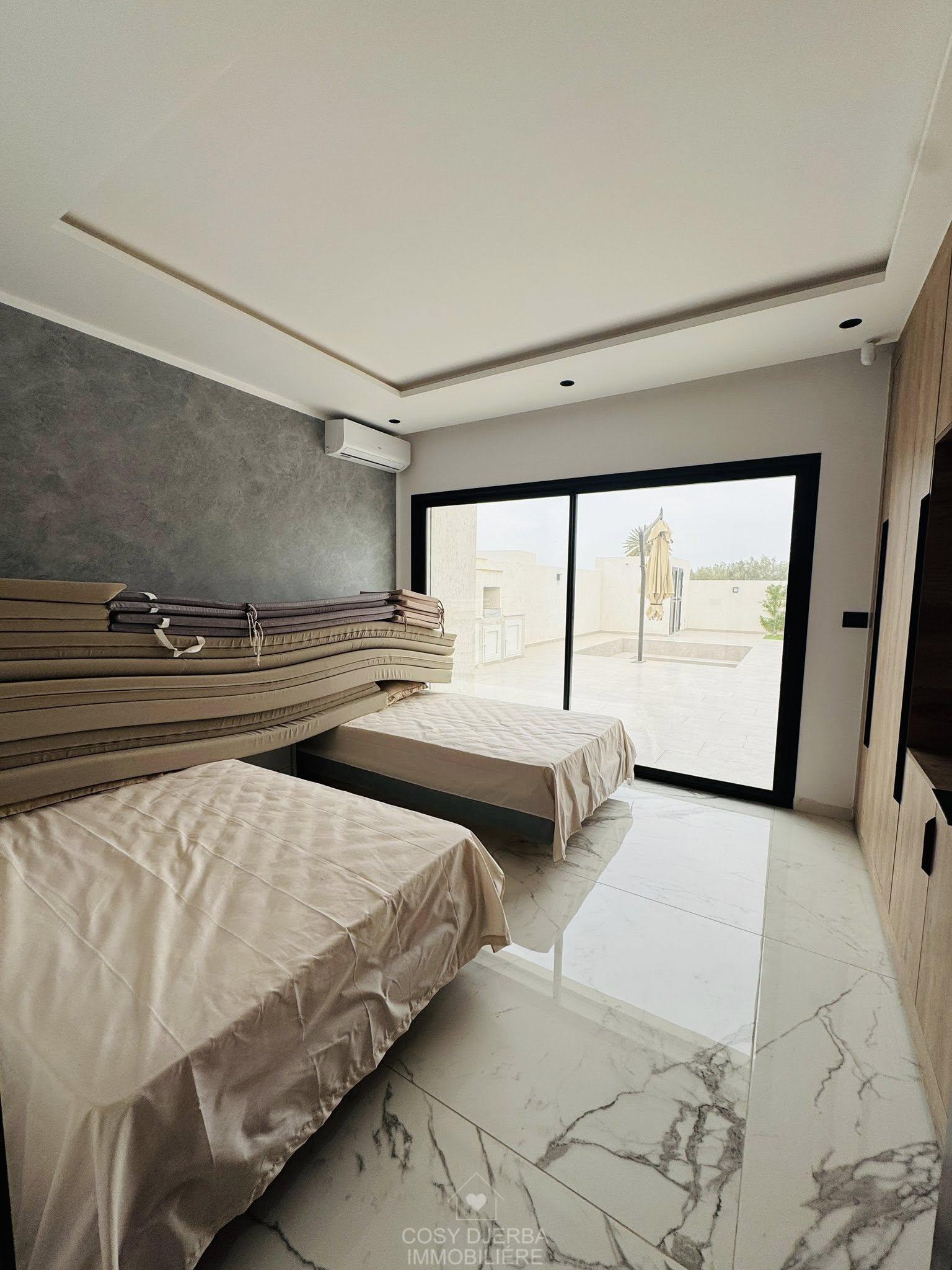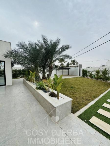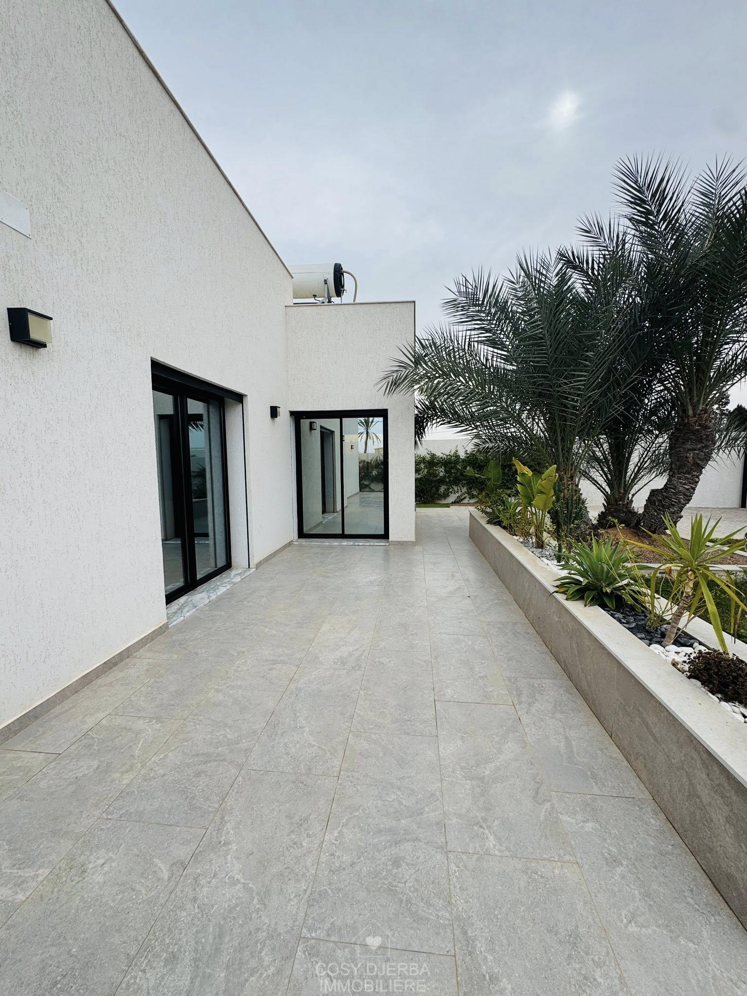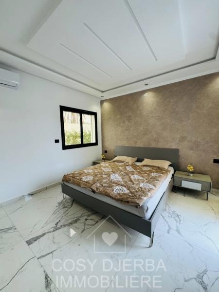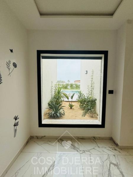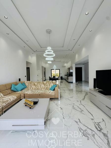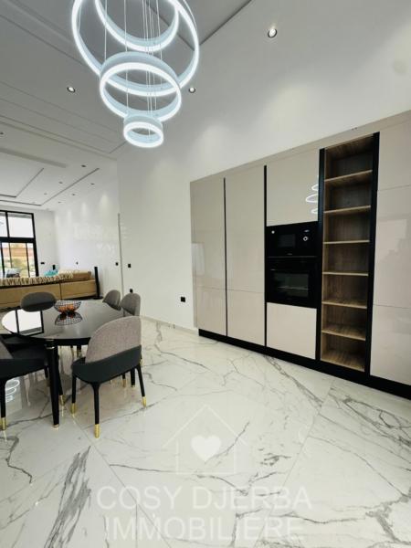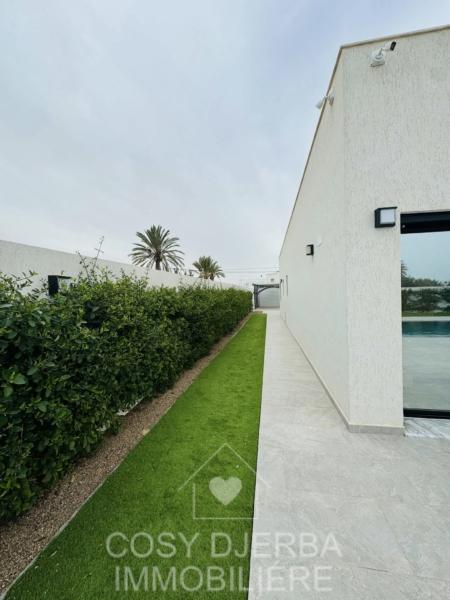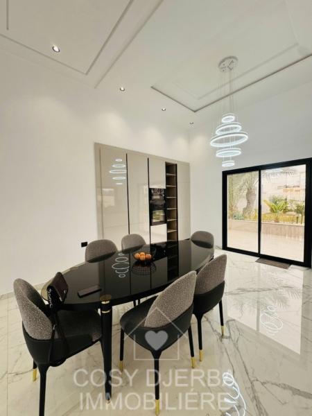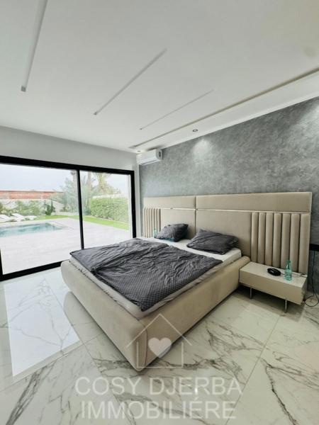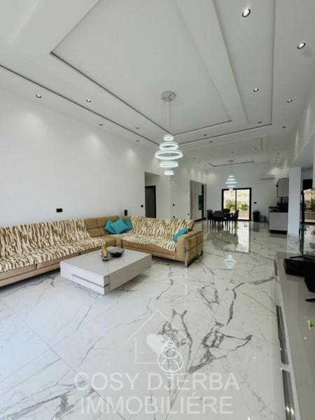 Cosy Djerba immobilier vous propose à la location annuelle cette superbe villa S4 moderne avec piscine, située à Tezdaine Djerba.