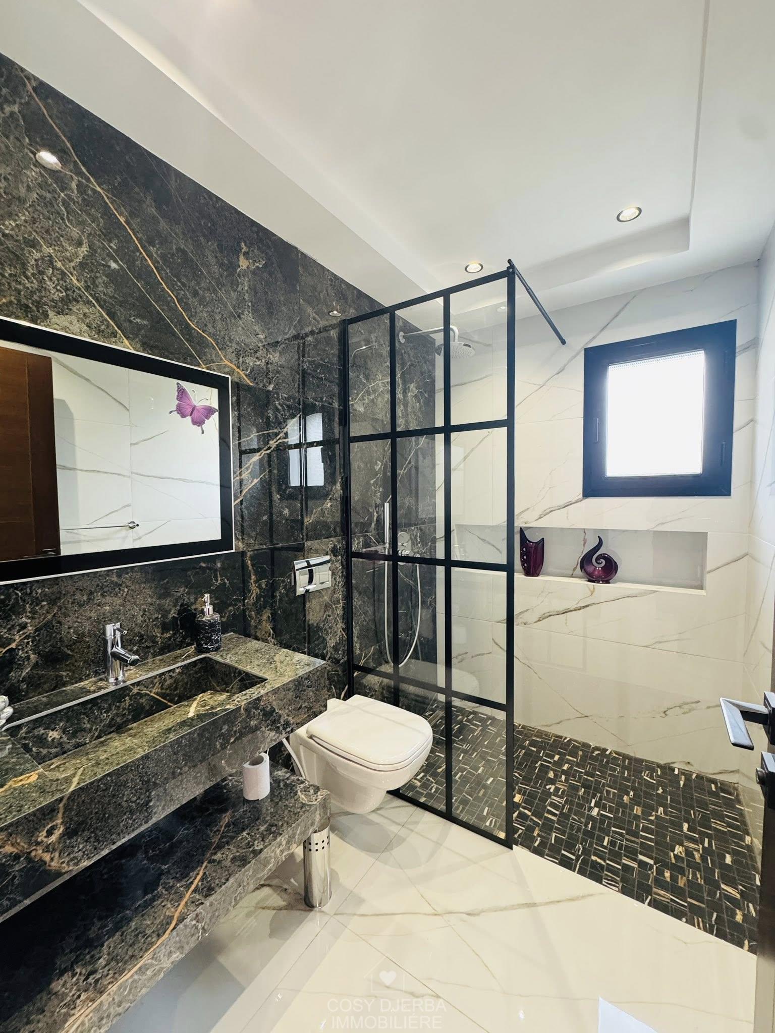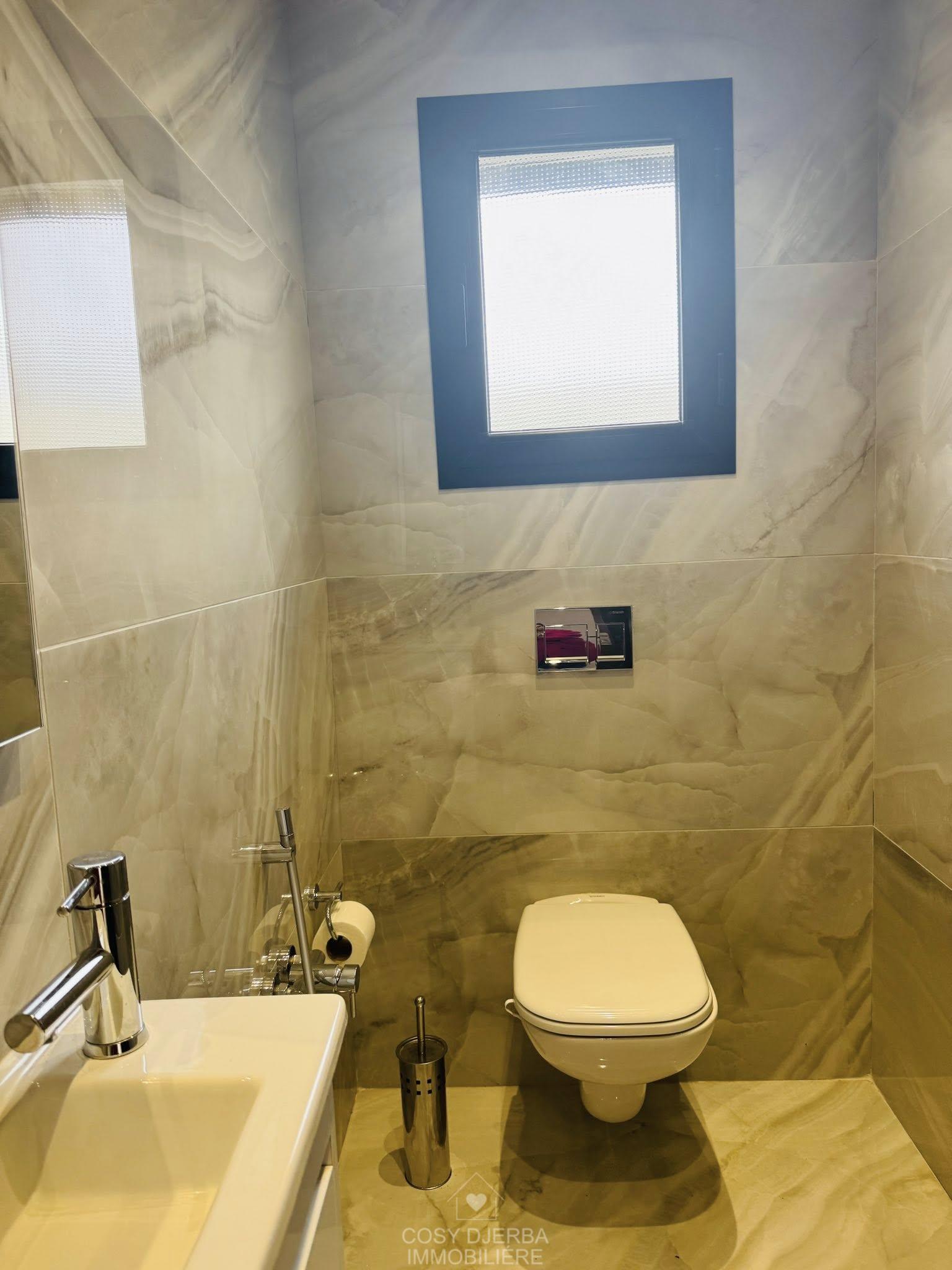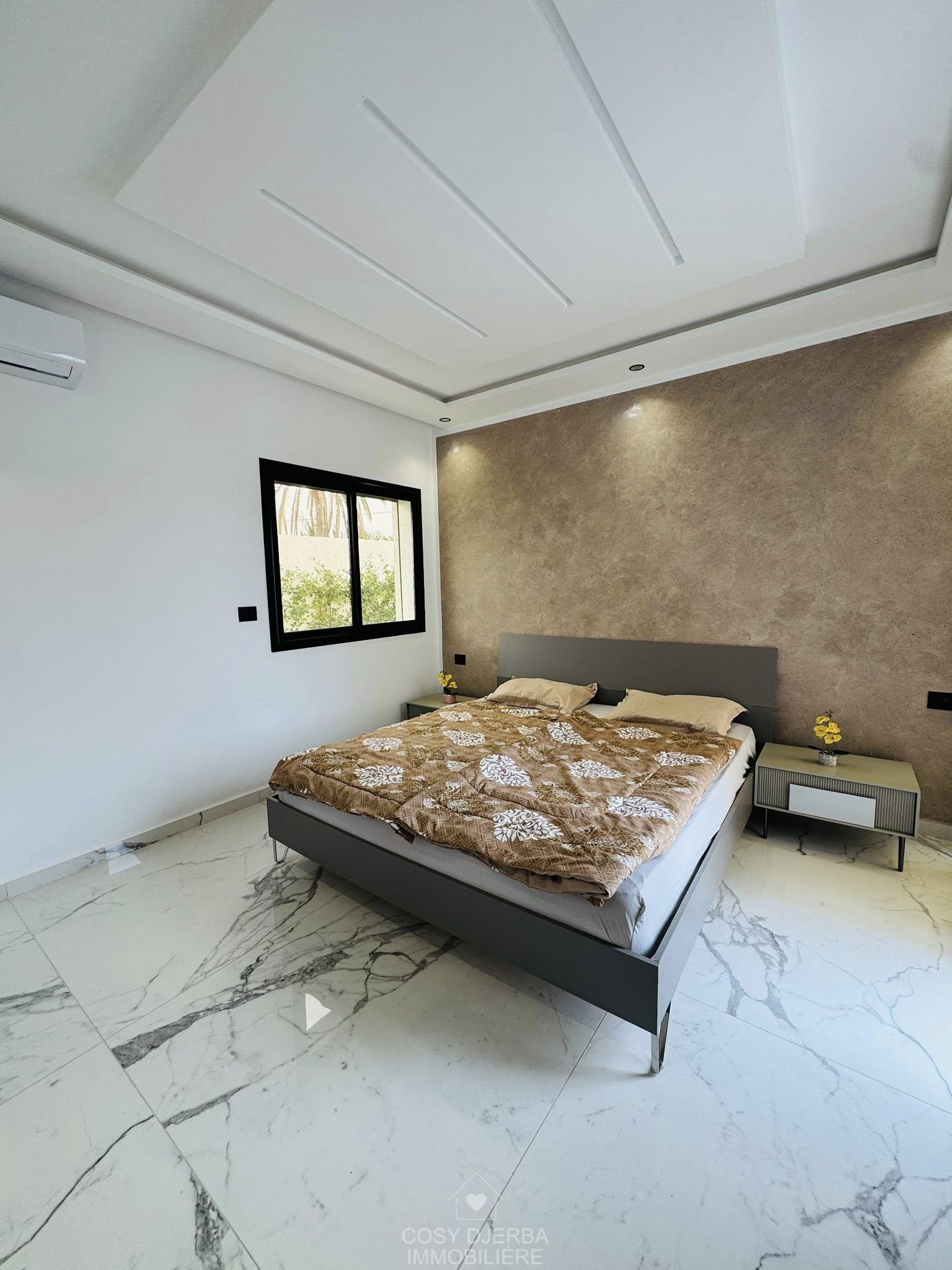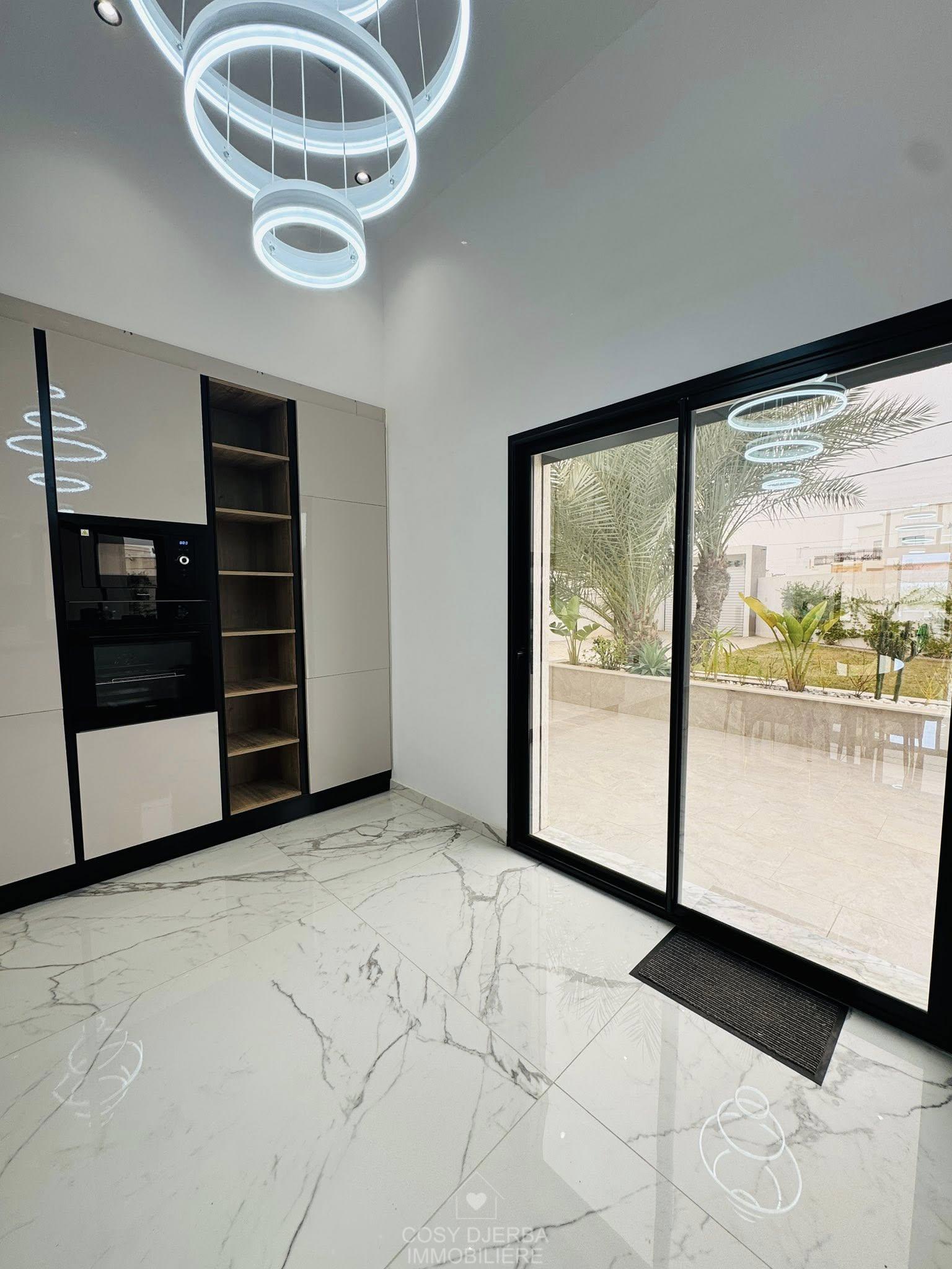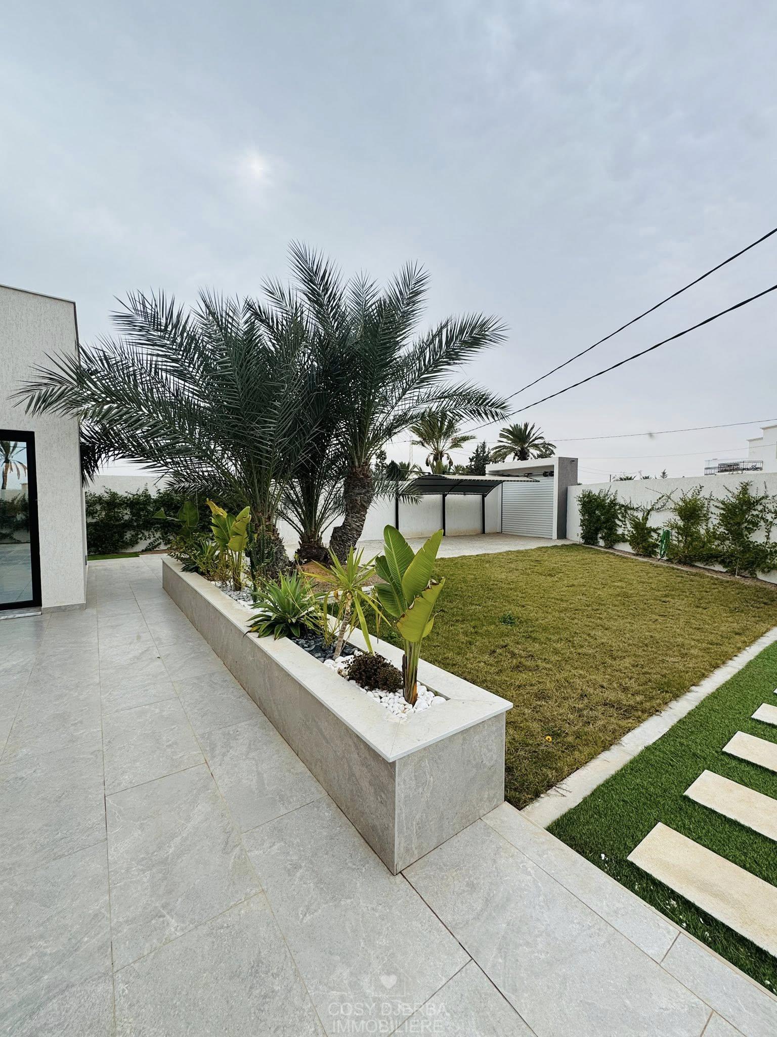 Cosy Djerba immobilier vous propose à la location annuelle cette superbe villa S4 moderne avec piscine, située à Tezdaine Djerba.