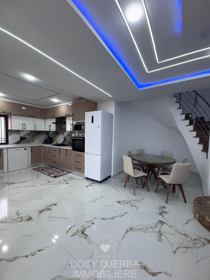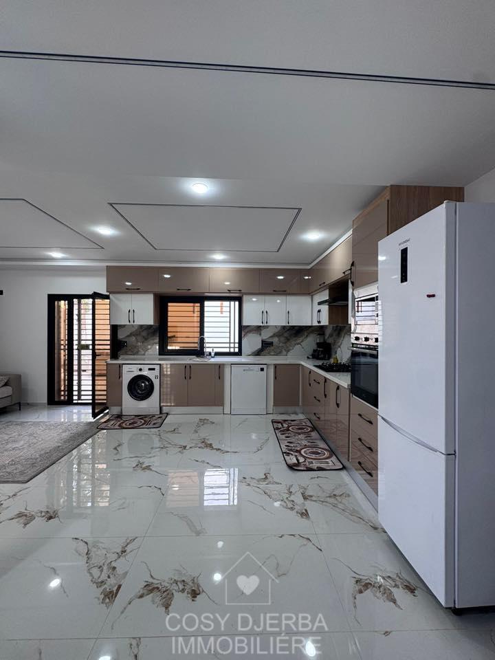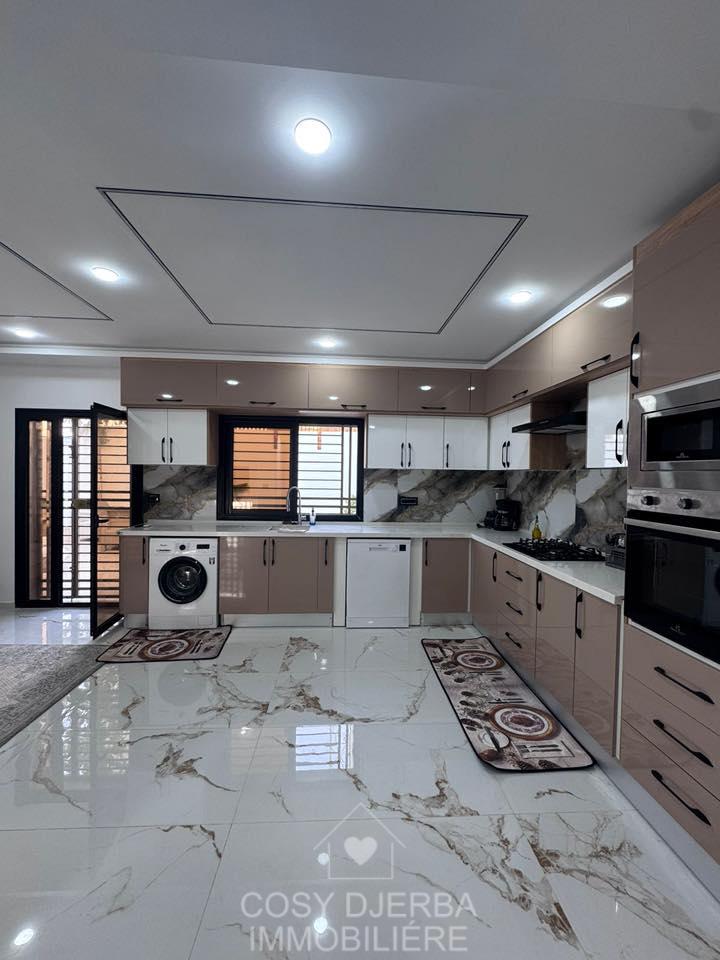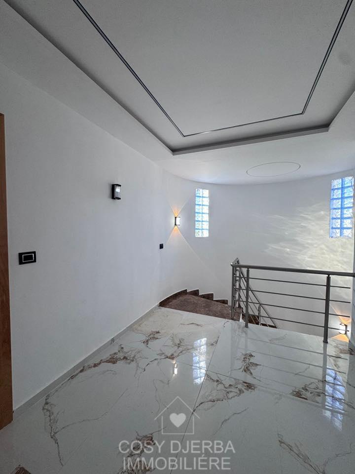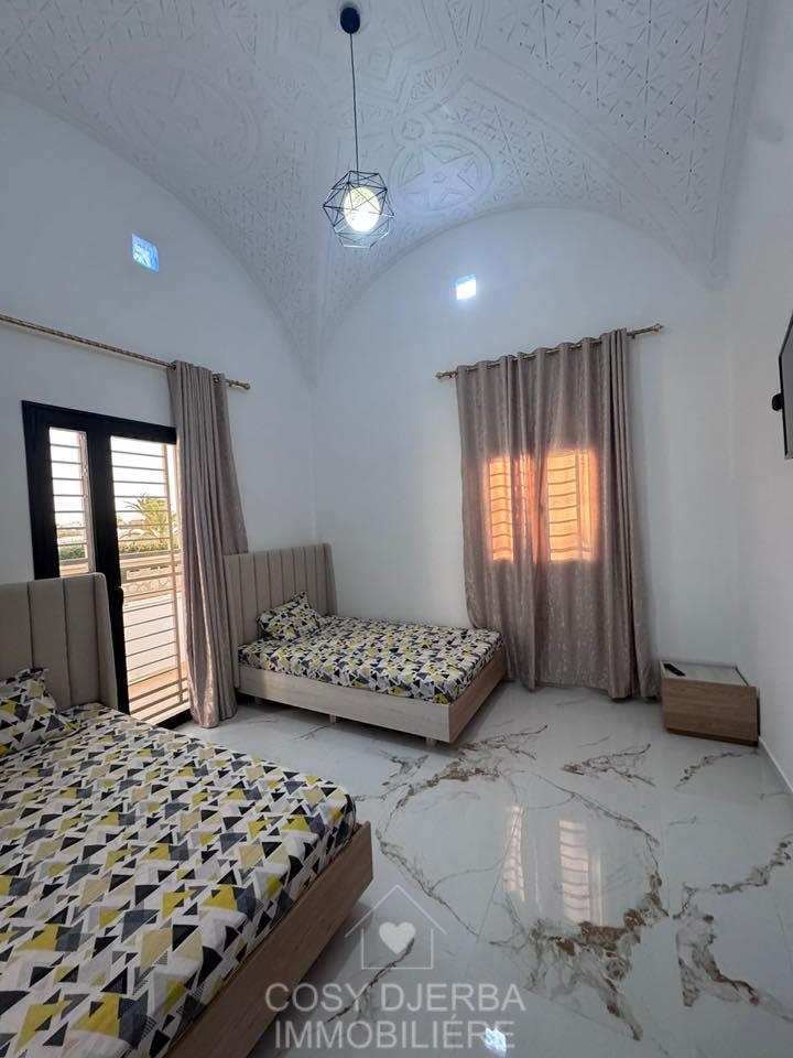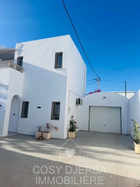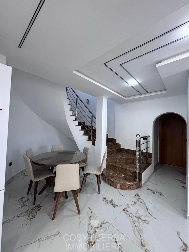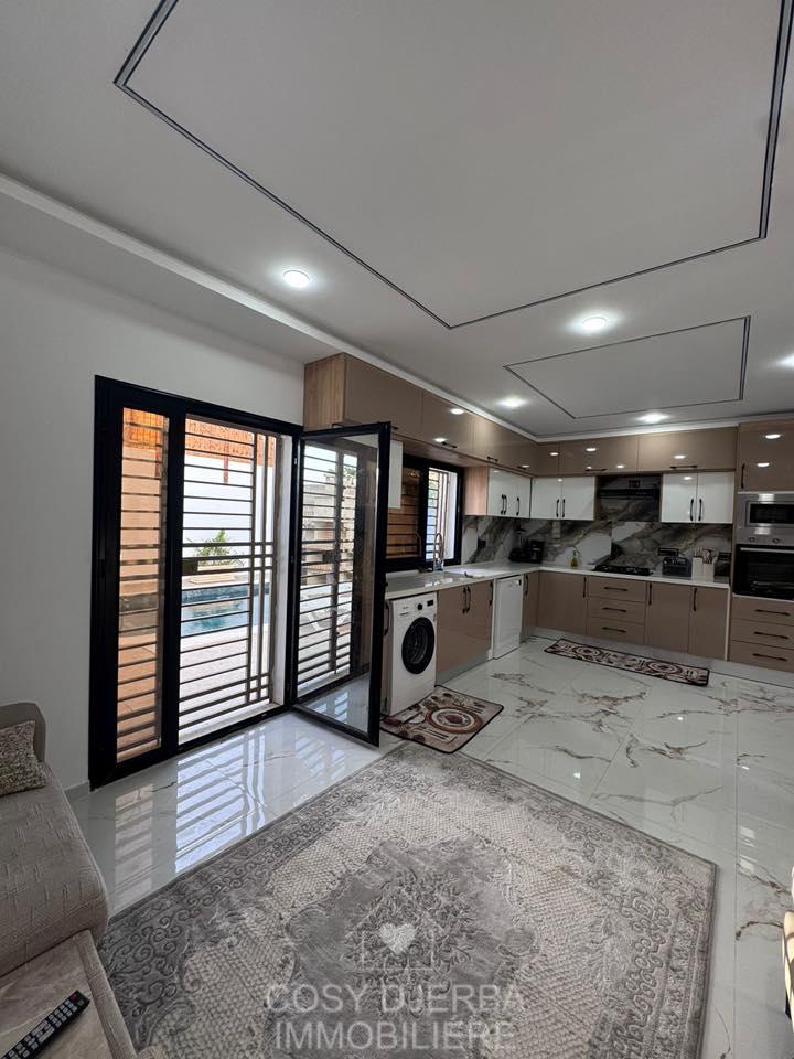 Cosy Djerba immobilier vous propose à la location annuelle cette superbe villa moderne avec piscine, située à Midoun Djerba.