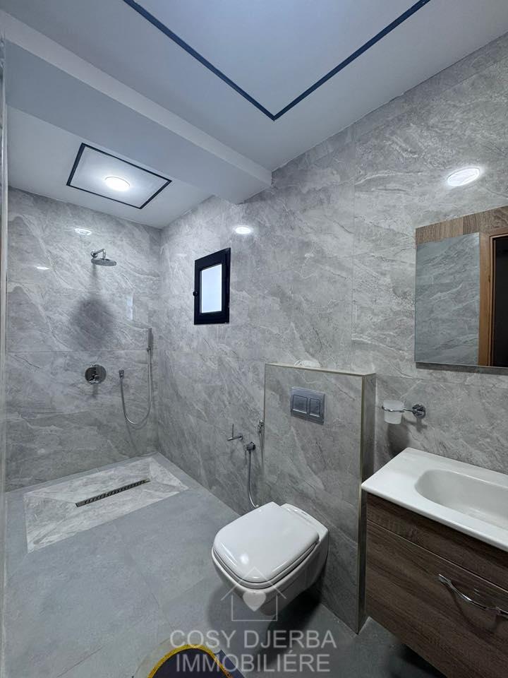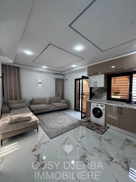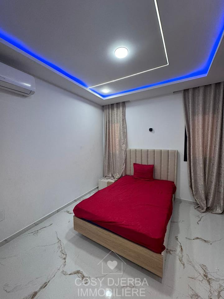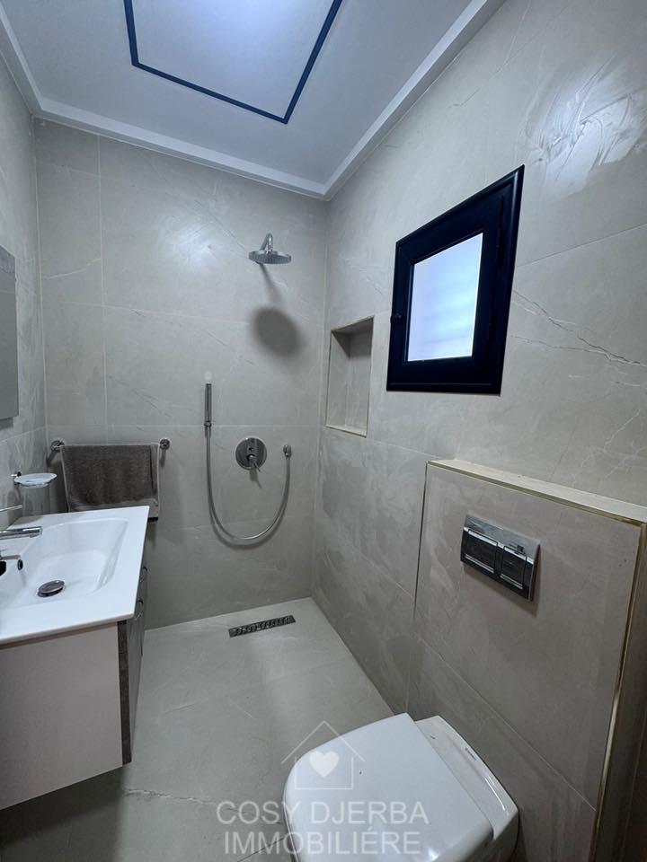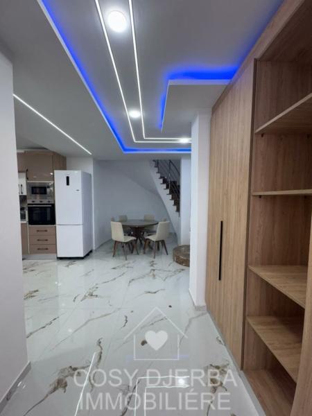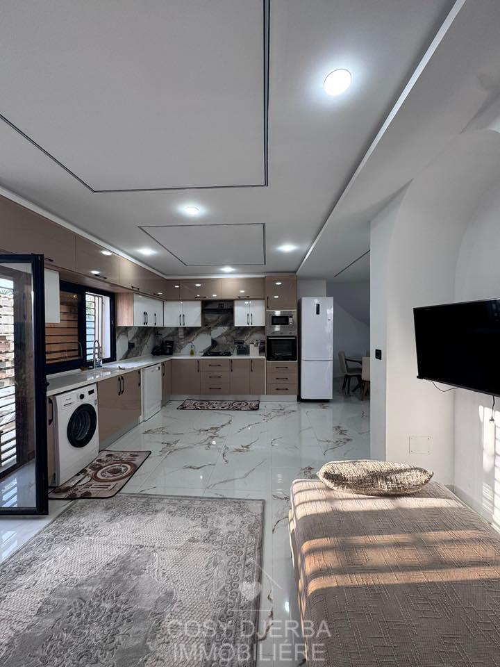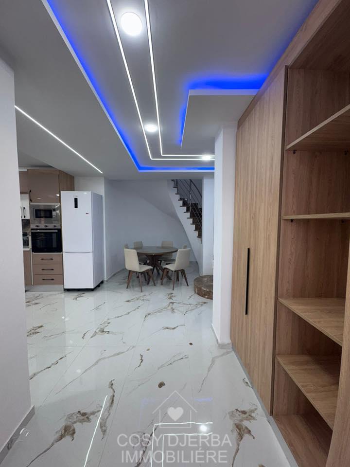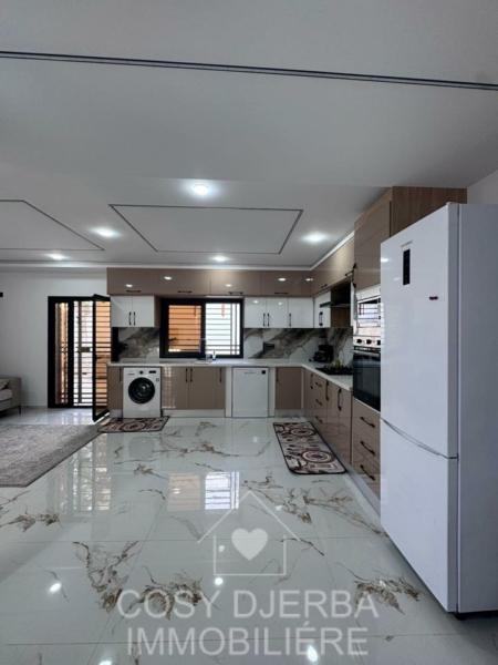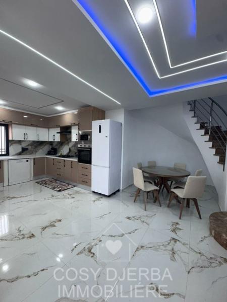 Cosy Djerba immobilier vous propose à la location annuelle cette superbe villa moderne avec piscine, située à Midoun Djerba.